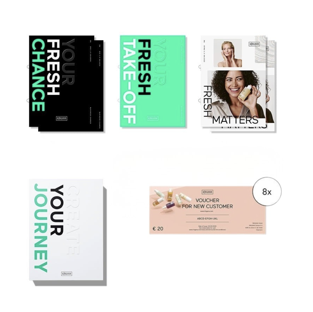 Neben den Startunterlagen und acht 20€-Neukundengutscheinen bekommst du den Webshop 3 Monate gratis.